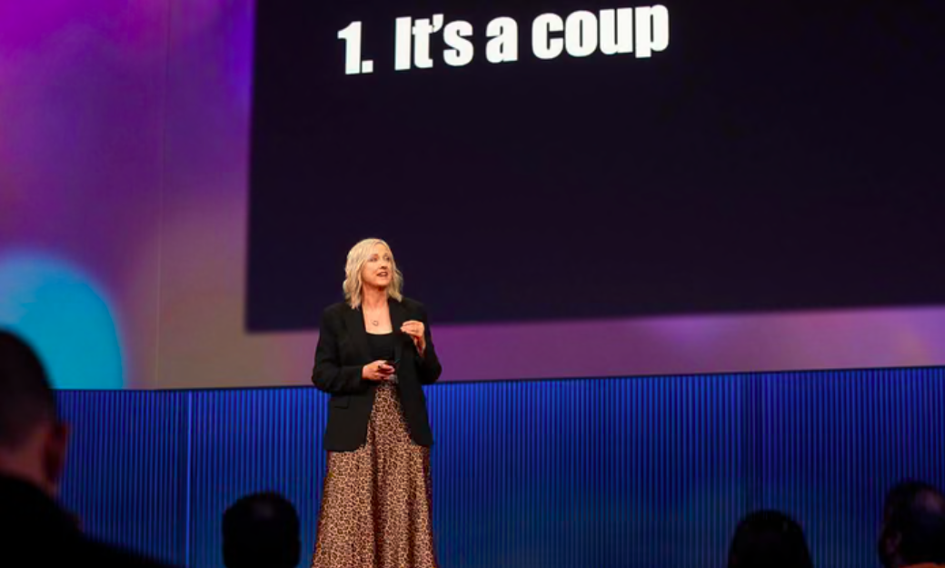 She opened her presentation with the statement “It's a coup'” She stated “The internet we’ve created, captured by big corporations and built on data tracking, was not inevitable. Nor is what’s coming next. ... AI is in the hands of a small group of reckless, careless men who seem to have no understanding of society. To them, it’s just a race; a winner-takes-all competition. All while the world still looks much the same – same streets, same houses, same politicians talking on the same TVs. It’s why it’s so hard to get your head around it.”